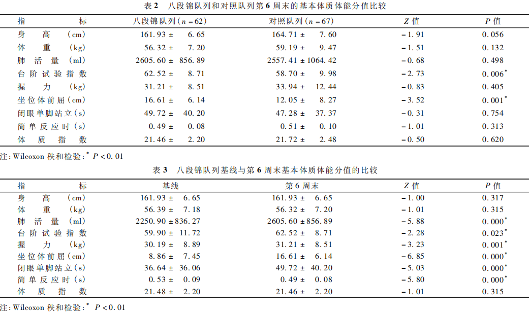 习练八段锦对疲劳性亚健康者...体质体能改善作用的队列研究