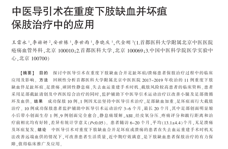 《中医导引术在重度下肢缺血并坏疽保肢治疗中的应用》